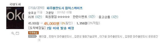 건축가 승효상의 『파주출판도시 컬처스케이프』. 파주출판도시에 지어진 건축물을 유형별로 나누어 소개하고 있다. 특별한 보편성을 지닌 건축물로 가득한 파주출판도시로 초대한다. 살림, 다락원, 웅진씽크빅, 생능, 민음사, 그리고 교보문고 등의 건축물을 만날 수 있다.