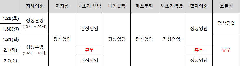 설 연휴기간 위와 같이 운영하오니 이용에 착오 없으시길 바랍니다. 감사합니다.