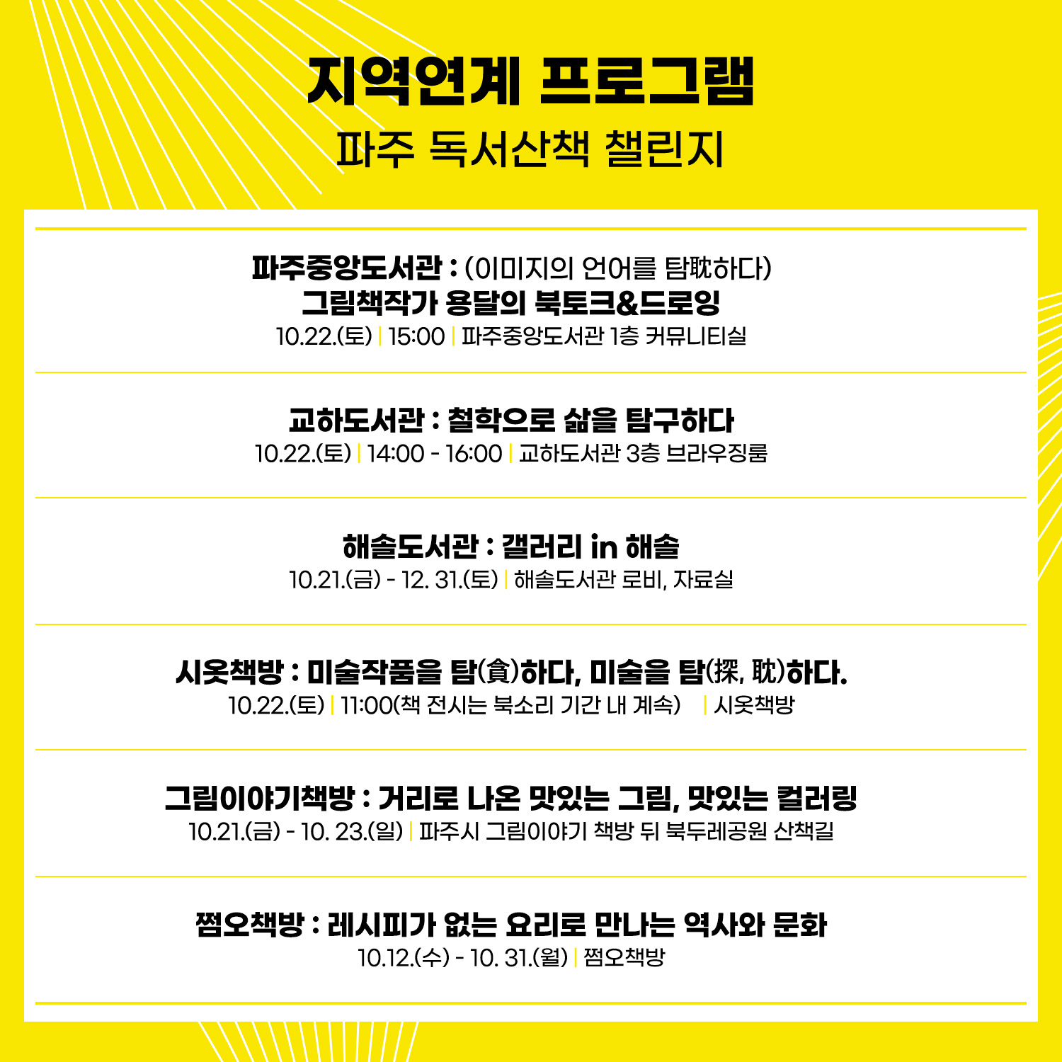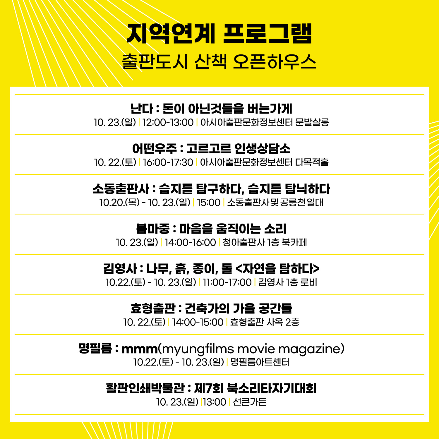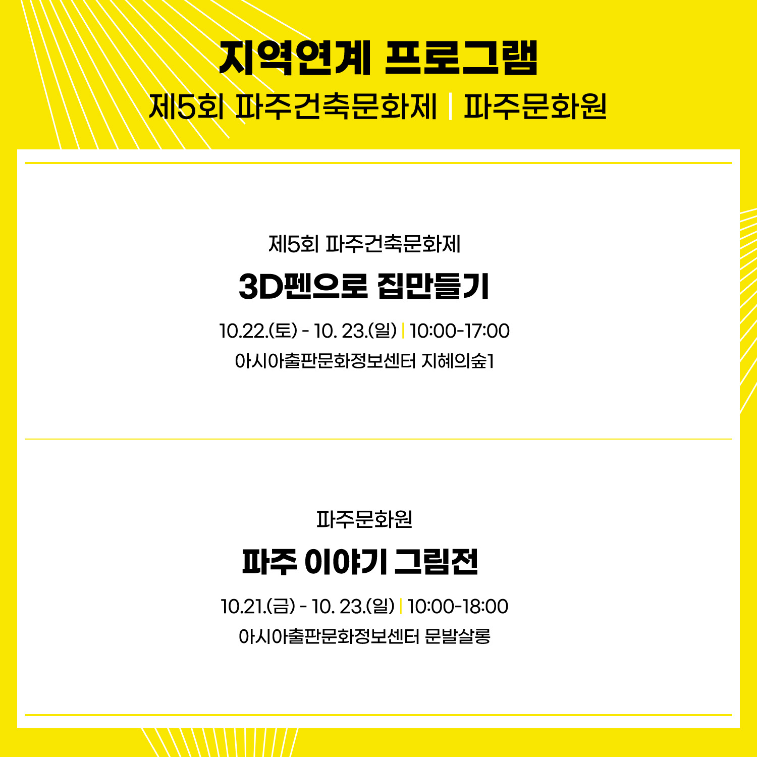 - 행사장소: 아시아출판문화정보센터 등 출판도시 곳곳