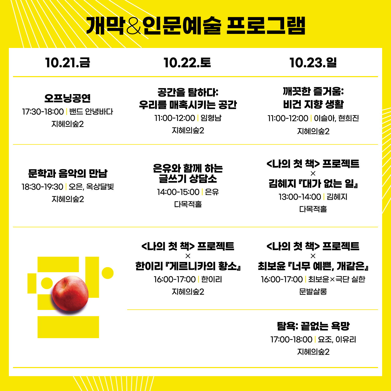 - 주요내용: 인문예술 프로그램, 전시, 지역연계 프로그램 등