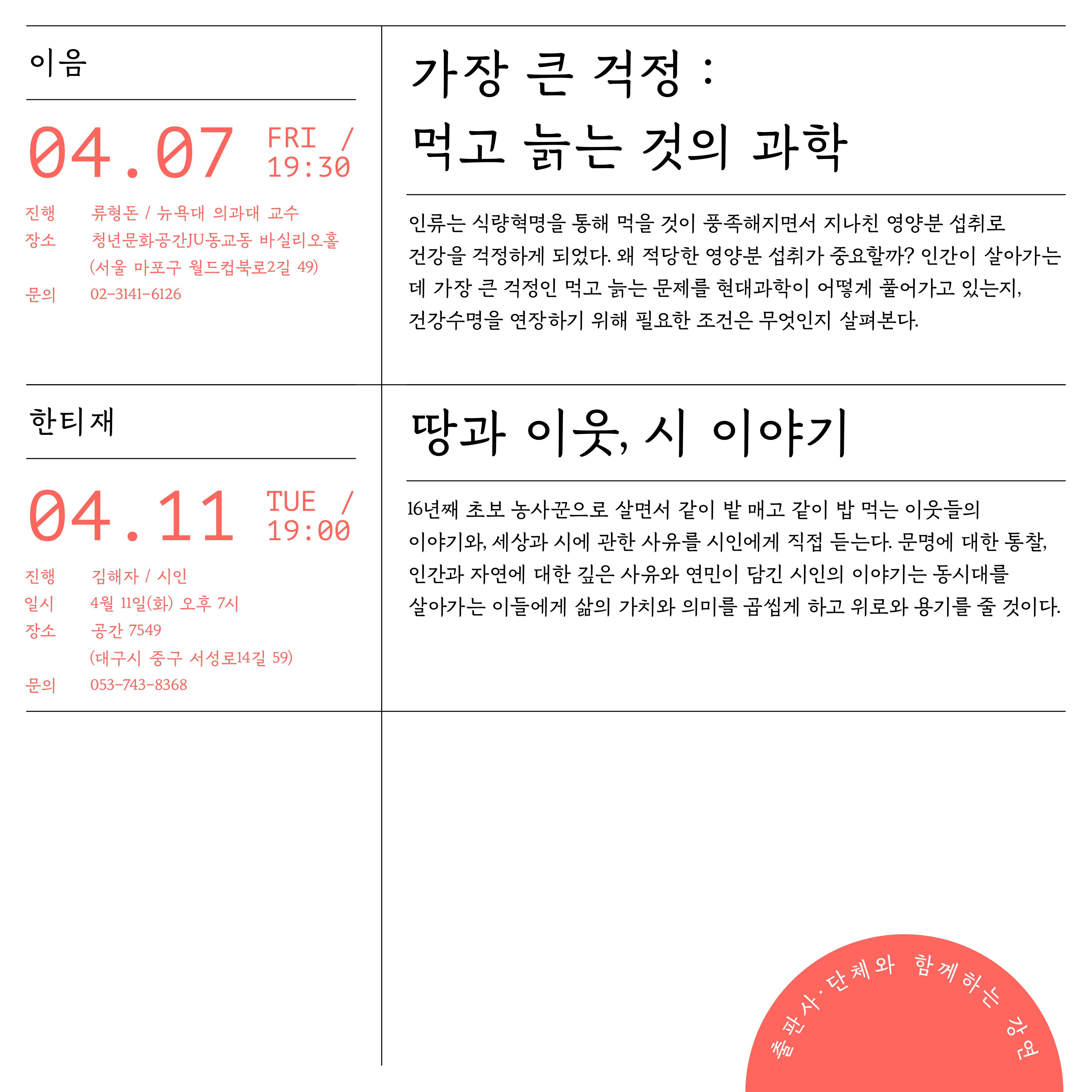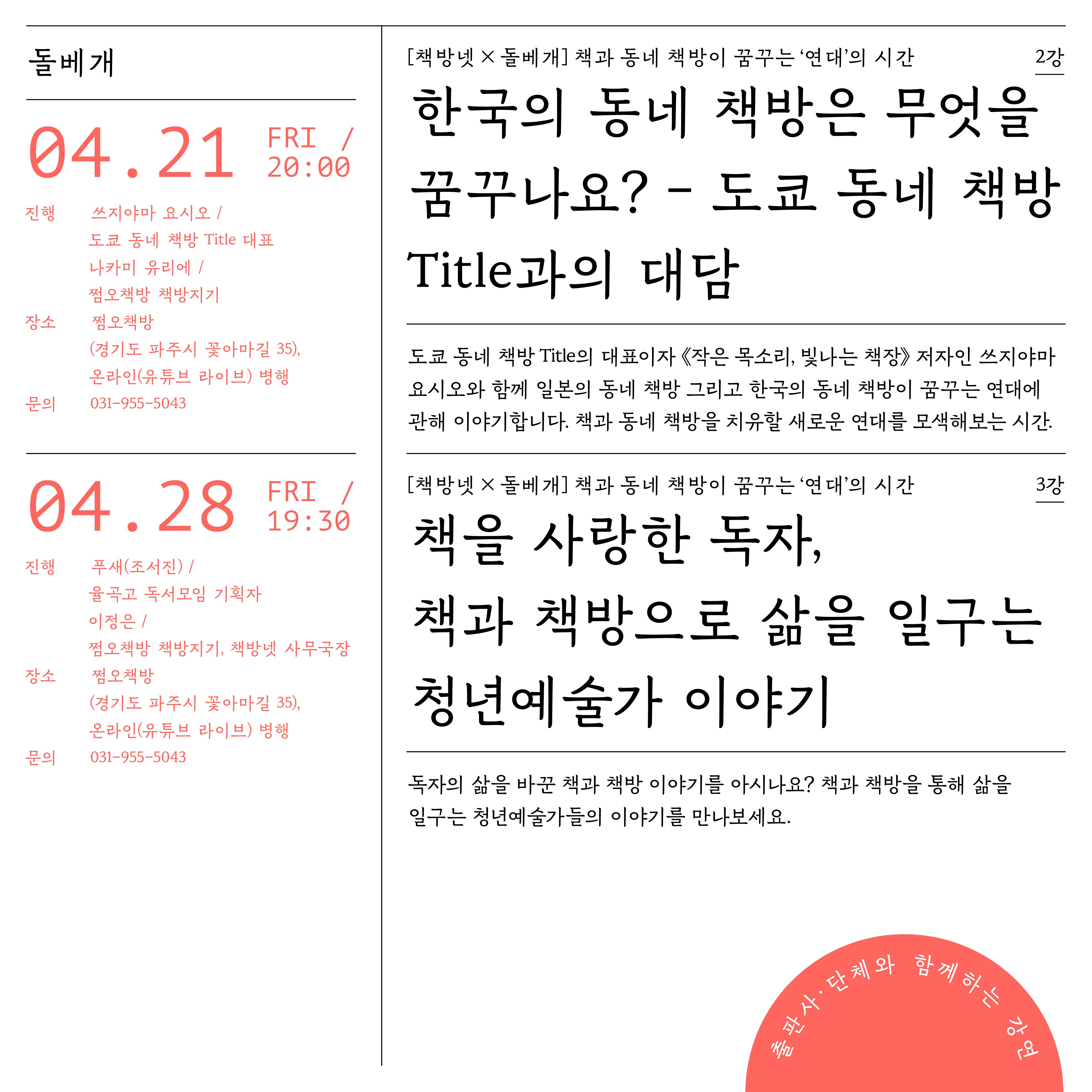자세한 내용은, 아래 출판도시 인문학당 홈페이지에서 확인해 주세요!