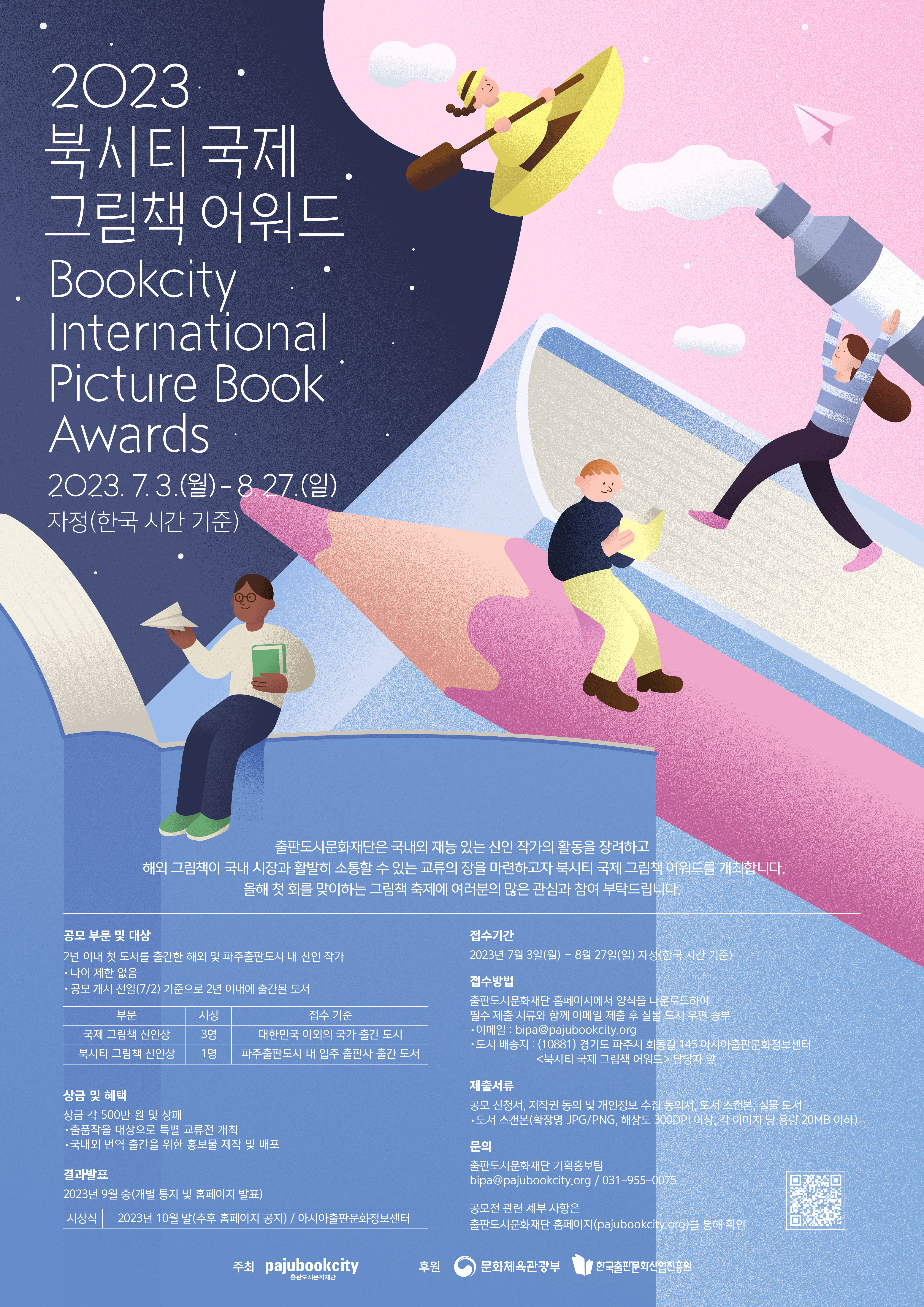 □ 접수 방법 : 본 페이지 상단 첨부파일에서 신청서 다운로드하여 필수 제출 서류와 함께 이메일 제출(bipa@pajubookcity.org)후, 실물 도서 우편 송부