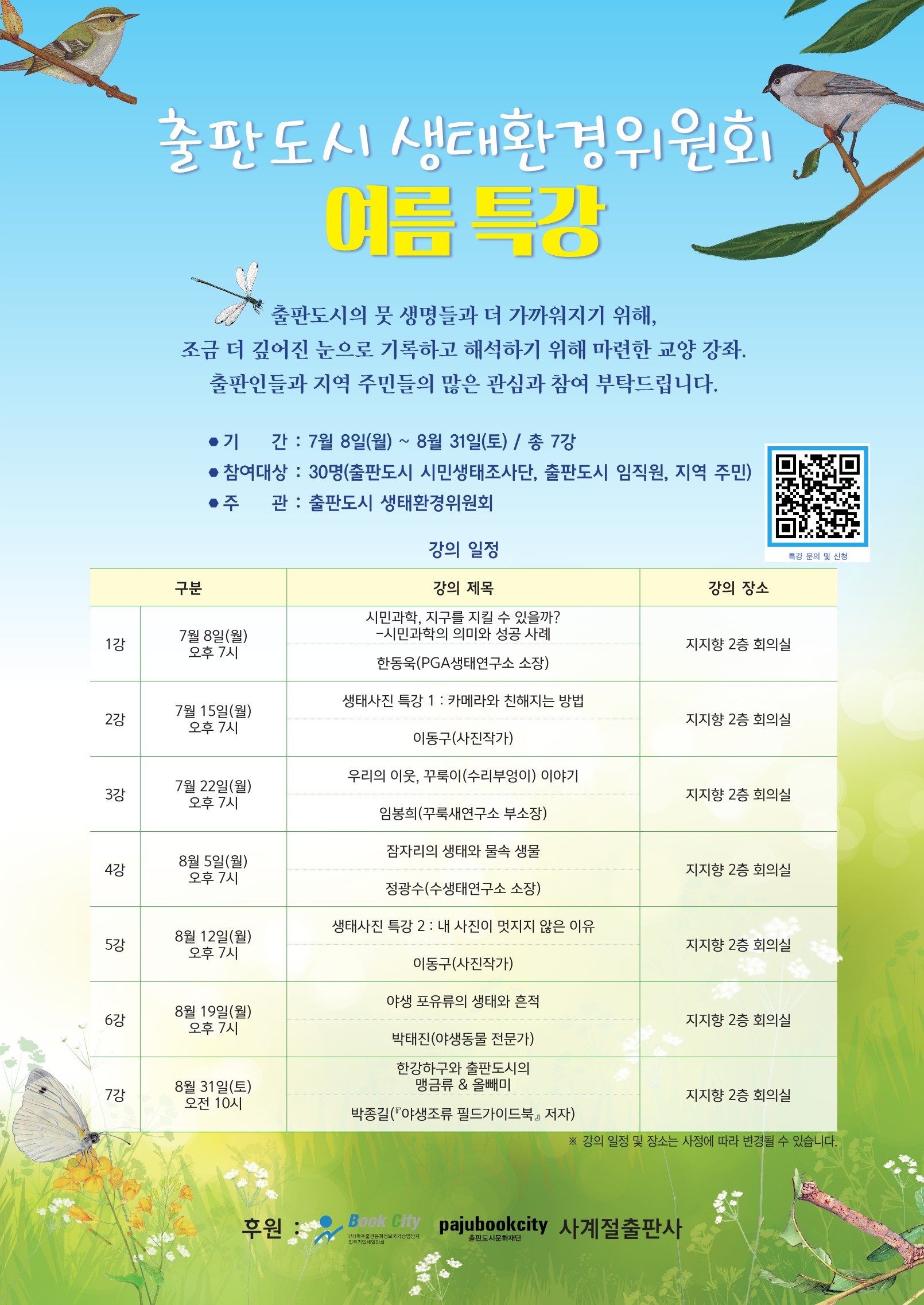 출판도시의 뭇 생명들과 더 가까워지기 위해, 출판도시 생태환경위원회에서 '여름 특강'을 준비했습니다.