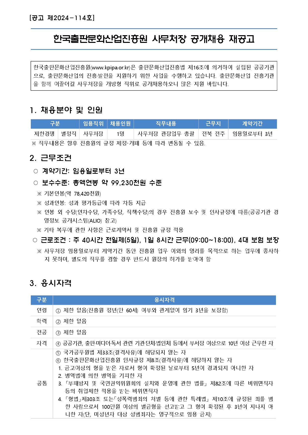 `한국출판문화산업진흥원` 사무처장 공개채용 공고