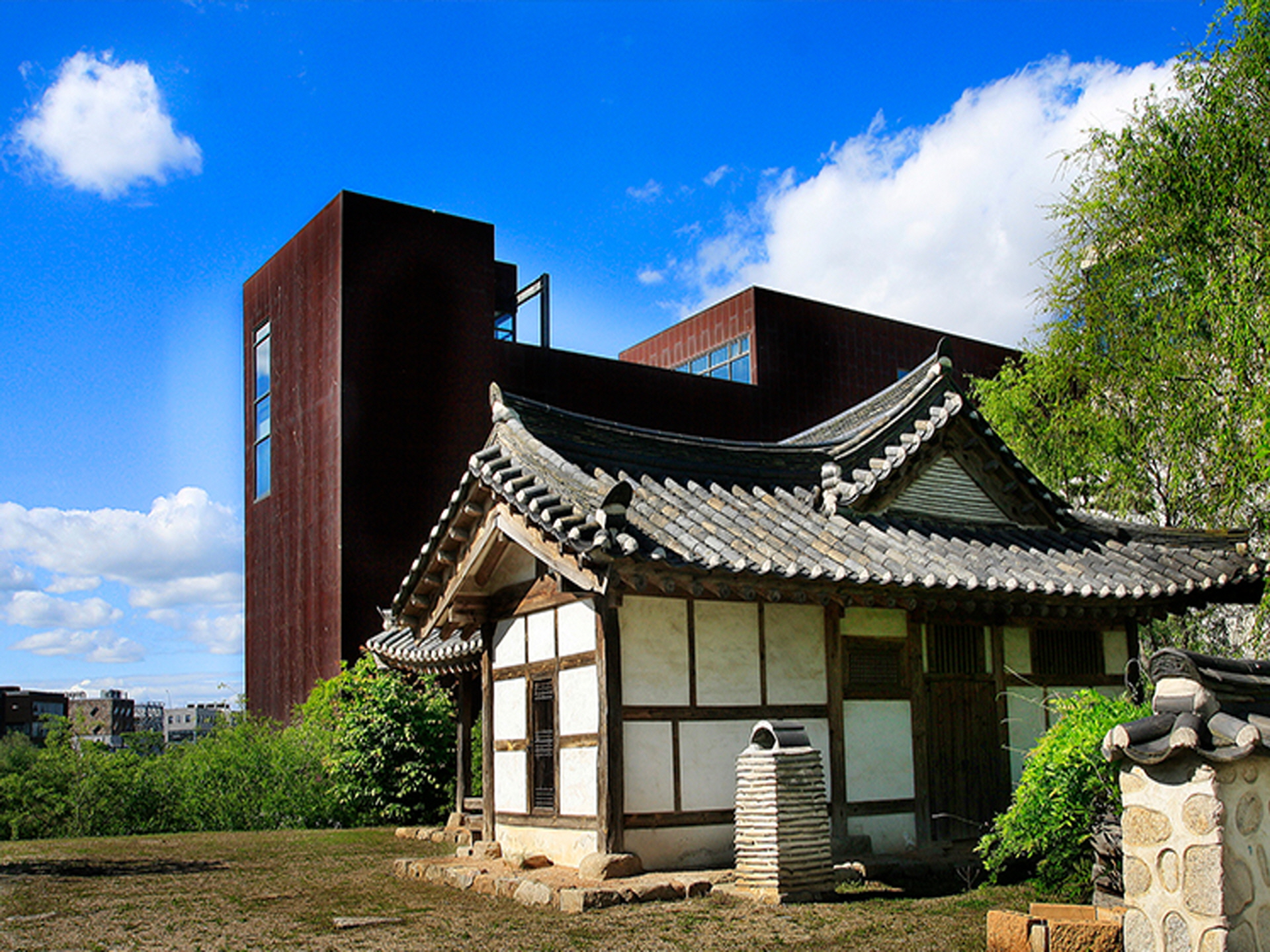 심학산 자락에서 갈대샛강을 이어지는 입지, 그리고 붉은색 내후성강판과 노출콘크리트 그리고 목재로 구성된 건물의 외장은 사계절 변화하는 풍경과 어우러져 자연스러운 아름다움을 자랑합니다.