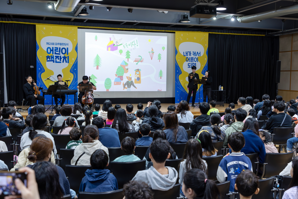 - 파주출판도시 어린이책잔치는 출판인들이 직접 준비하는 살아있는 ‘책 놀이터’입니다. 지난 2003년 본 행사가 처음 시작된 이래 파주출판도시는 ‘어린이를 닮은 도시’ 를 표방하며 어린이의 책 읽는 즐거움을 위한 다양한 프로그램을 마련해왔습니다. 매년 새로운 주제로 어린이 책을 조명해보는 테마전시는 어린이뿐만 아니라 전문가에게도 좋은 반응을 얻으며, 다양한 프로그램 개최를 통해 우리 어린이책의 세계화에도 일조하였습니다.