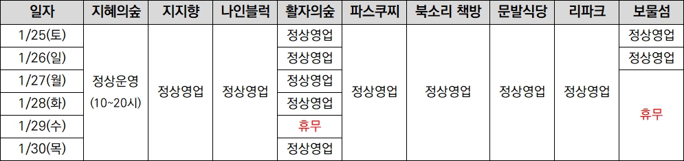 설 연휴기간 위와 같이 운영하오니 이용에 착오 없으시길 바랍니다. 감사합니다.