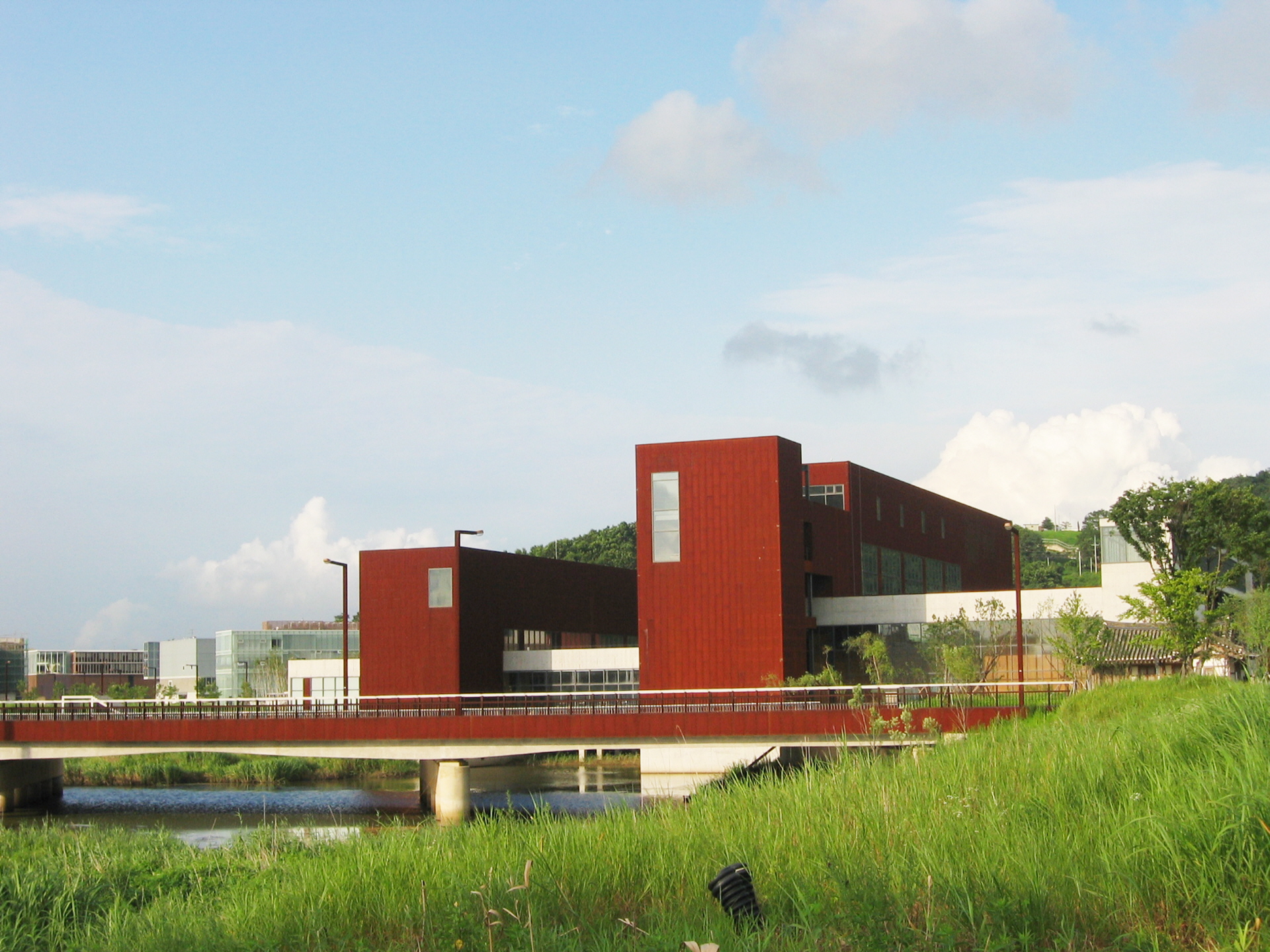 심학산 자락에서 갈대샛강을 이어지는 입지, 그리고 붉은색 내후성강판과 노출콘크리트 그리고 목재로 구성된 건물의 외장은 사계절 변화하는 풍경과 어우러져 자연스러운 아름다움을 자랑합니다.
